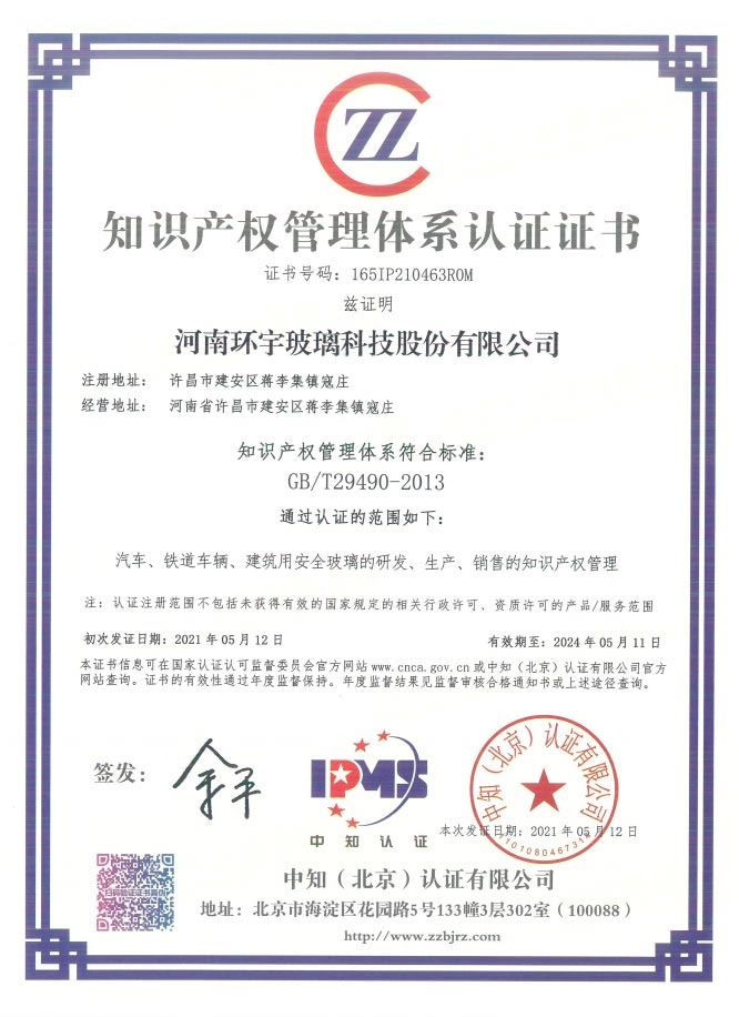 知識產權管理體系認證證書